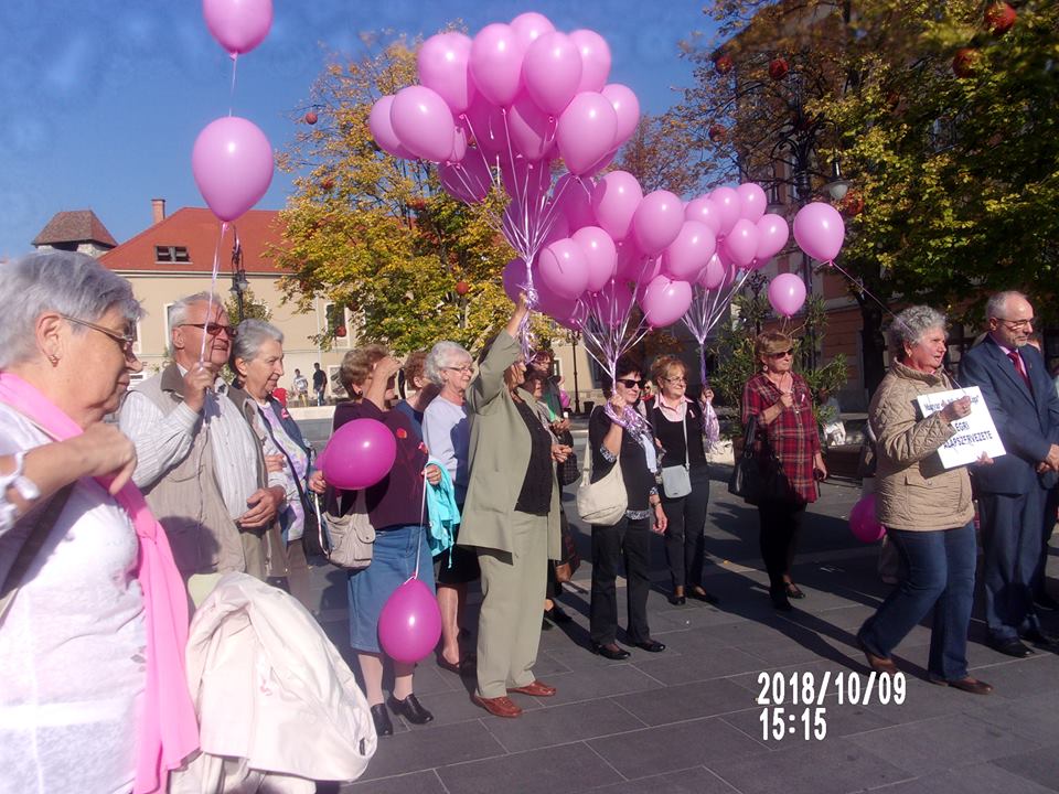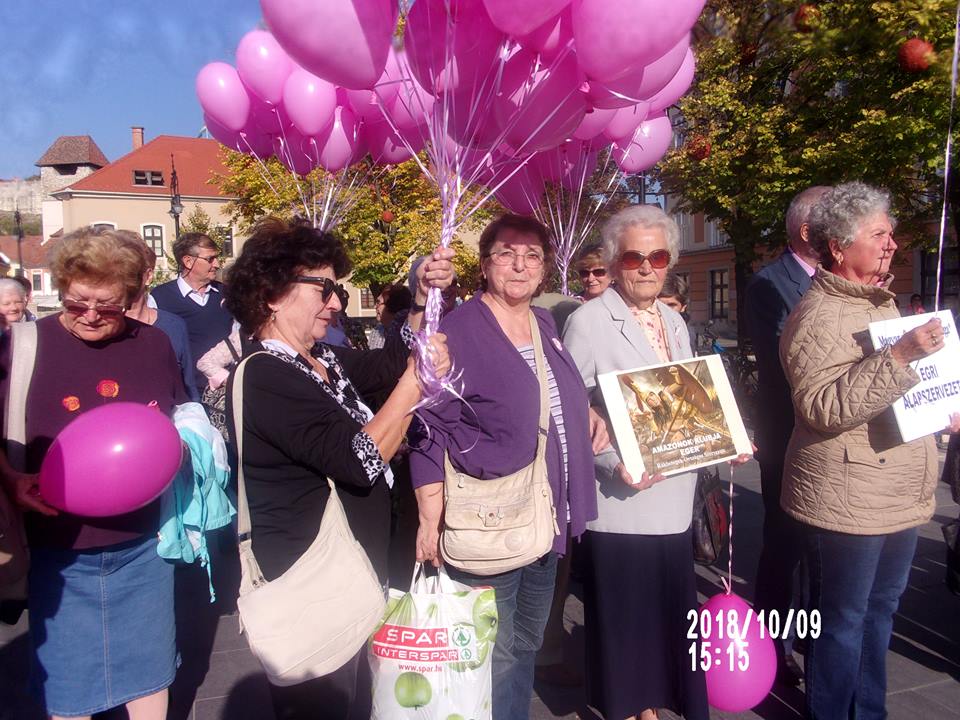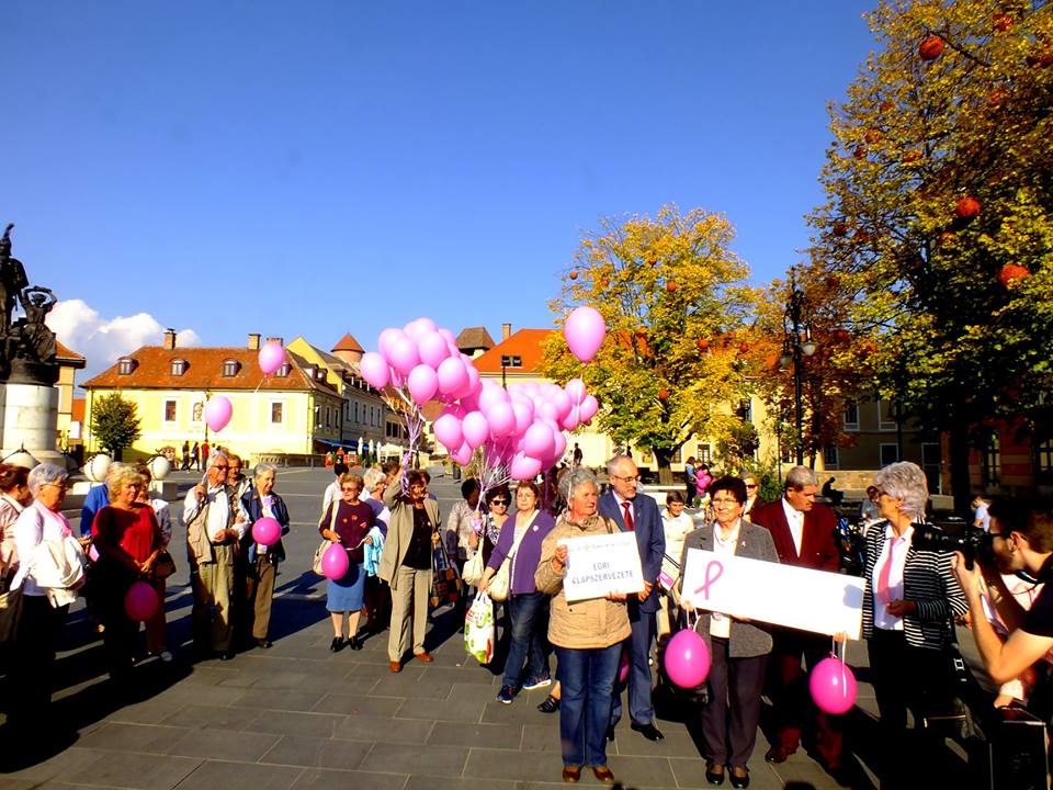 A társ szervekkel közösen vettünk részt a Rákbetegek világnapján rendezett ünnepségen és az azt követő rózsaszín szalagos sétán a Megyeházától a Dobó térre. Az Amazonok, a Rákellenes liga és a Cukorbetegek egyesületén kívül még sok érdeklődő csatlakozott a menethez.